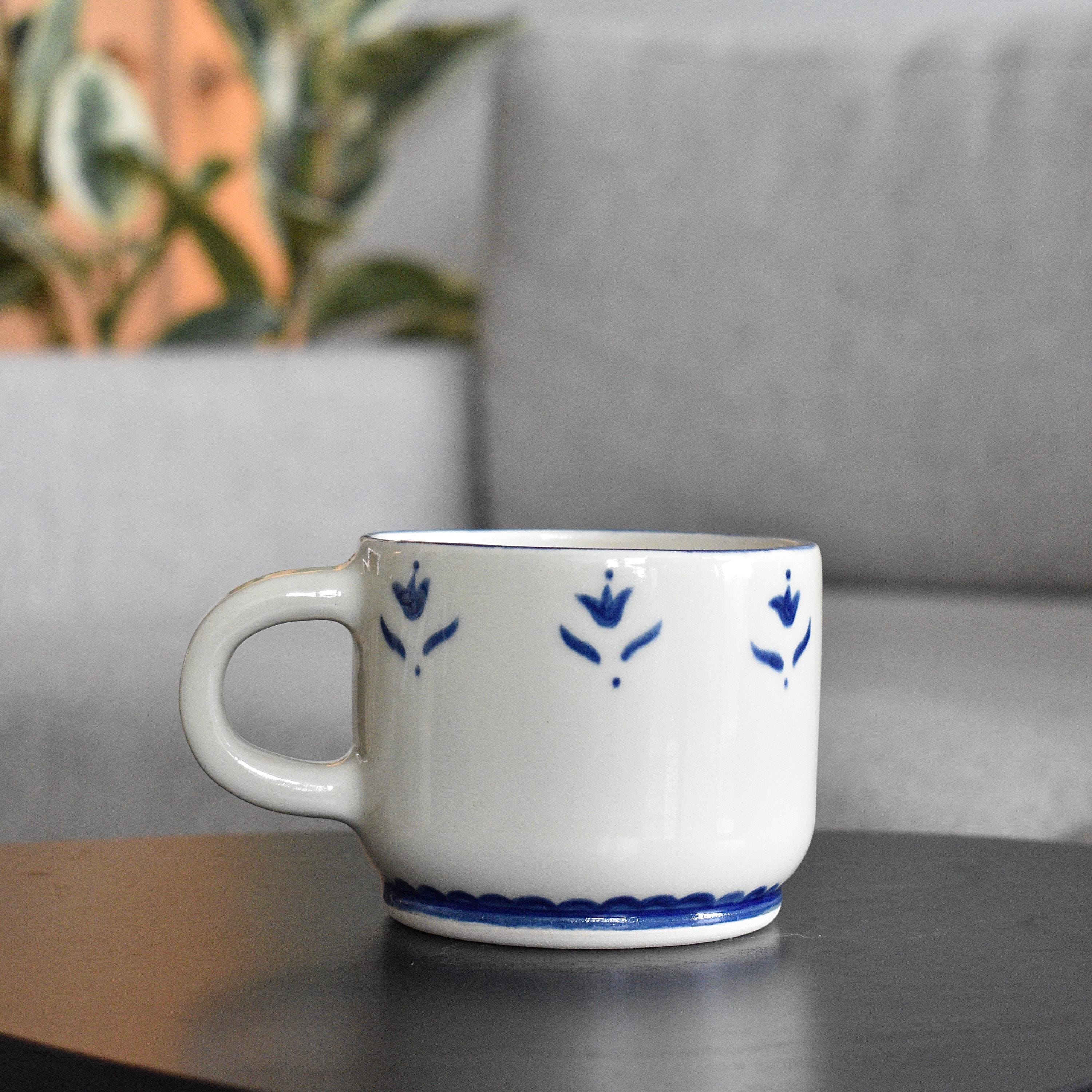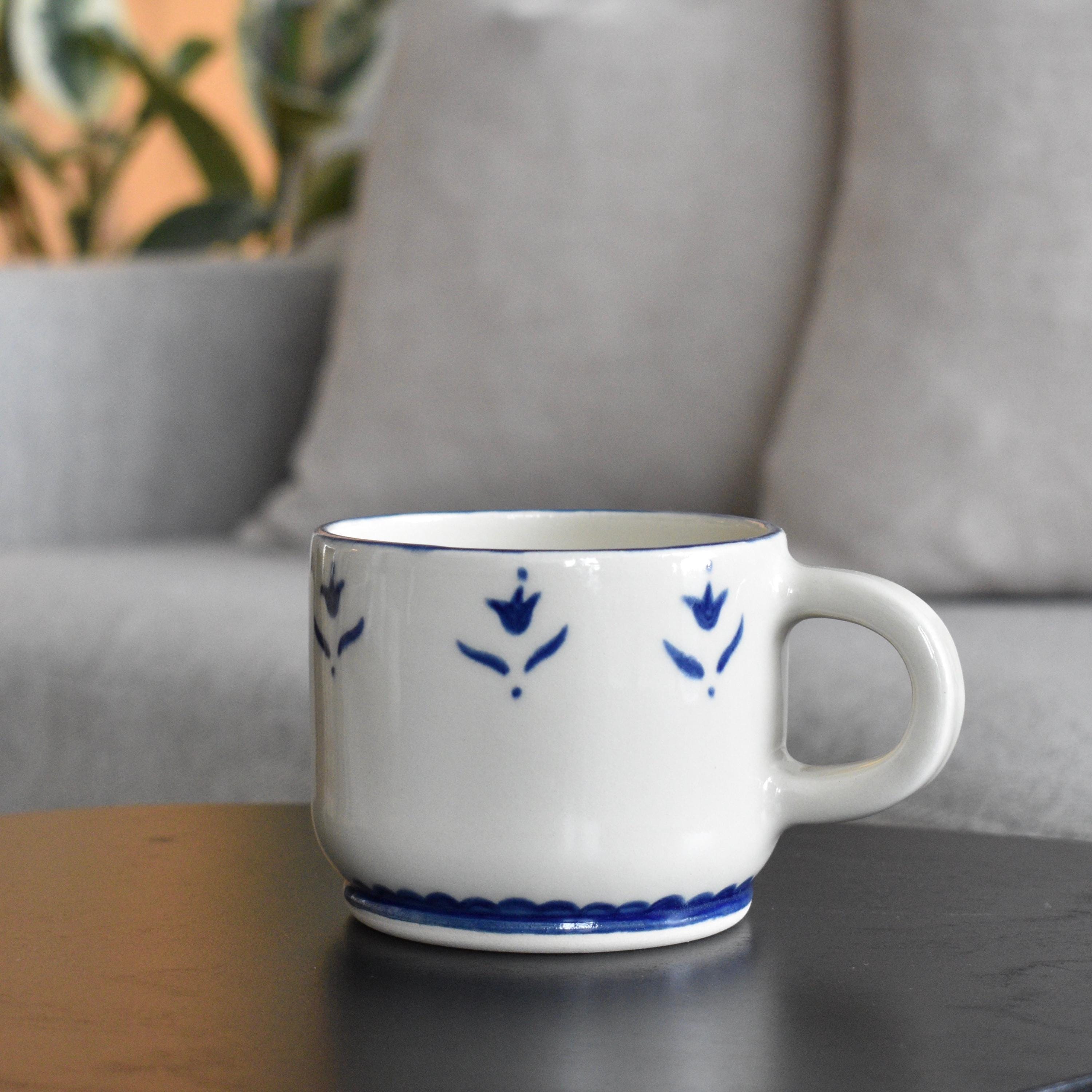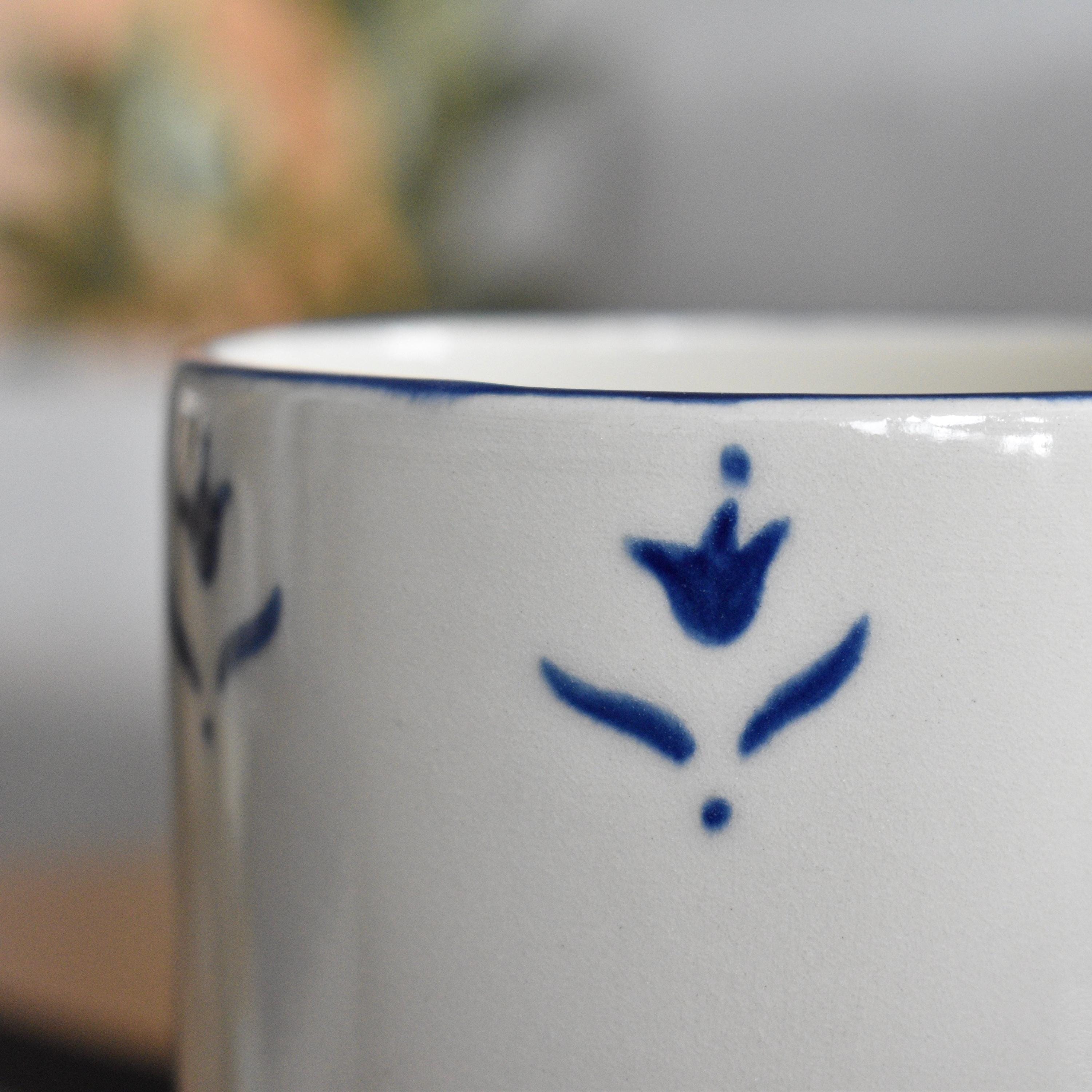 This ceramic mug is my take on the kind of piece you’d find in a sun-filled farmhouse kitchen - soft, dreamy blue details with timeless charm. Hand-thrown and hand-painted by me, it’s designed to feel comforting in your hands, perfect for slow mornings and cozy teas.